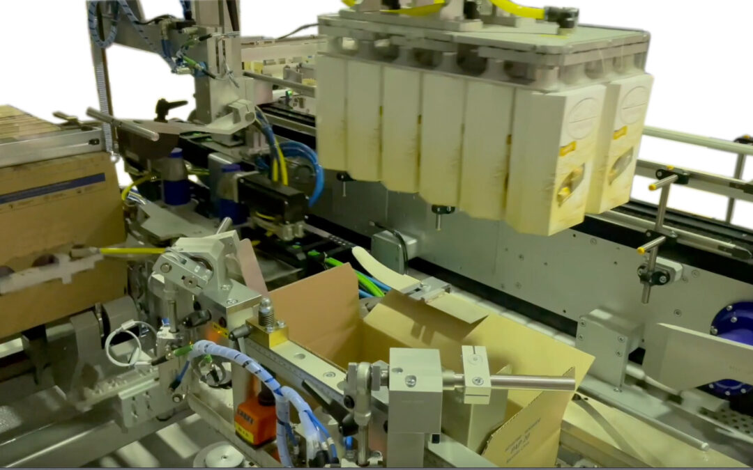 La nuova incartonatrice F30 ha “mandato in pensione”, dopo 18 anni di lavoro su 3 turni, la prima incartonatrice F30 installata nel lontano 2005 presso un’importante azienda del settore dolciario. La nuova versione è dotata di una collecting ad alte prestazioni per il raggruppamento dei prodotti. Un robot a due assi, prende e posa i prodotti nelle scatole. Il sistema di formatura delle scatole è stato aggiornato e consente di gestire varie tipologie di scatole.